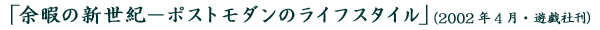 日本余暇学会としては休眠前の旧・余暇学会が1975年に「新時代の余暇」を上梓して以来、実に四半世紀ぶりの出版である。書名も前著の「時代」が新著では「世紀」になって余暇が前へ出ている。それだけ余暇の前進があったということだ。